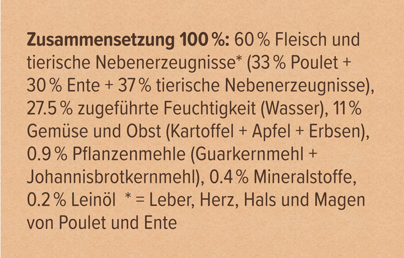 Zutatenzusammensetzung des Hunde-Nassfutters «Dose Ente» von ANiFiT